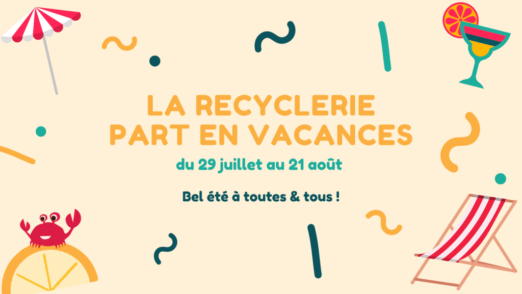 | Le Comptoir des Dons et la boutique seront fermés du 29 juillet (17h), au 21 août et nous ne serons pas présent.es en déchèteries. Nous vous retrouverons avec plaisir le 22 août dès 9h30. Bel été à vous ! |
